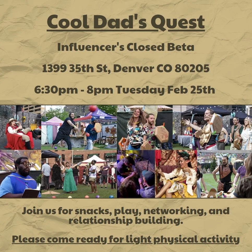 A closed event for Colorado influencers to learn about how they can partake in the Quest themselves! A great chance to network, mingle, and have fun with others in our “Industry”. We’ll provide light snacks, but please come fed and prepare for light physical activity (we will be testing variations of the game, which includes Dodgeball).